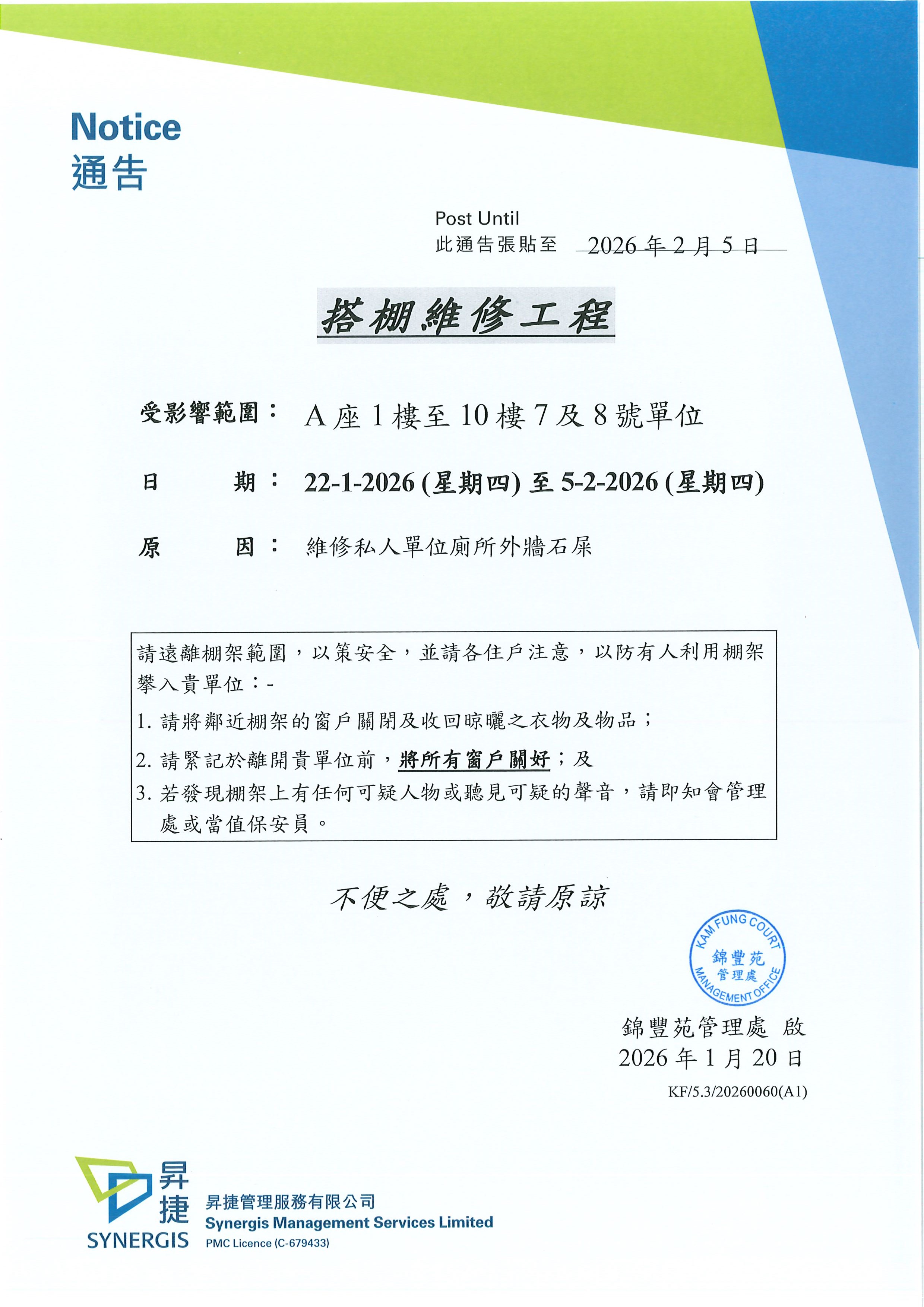 ©2021 馬鞍山錦豐苑業主立案法團 版權所有 不得轉載。