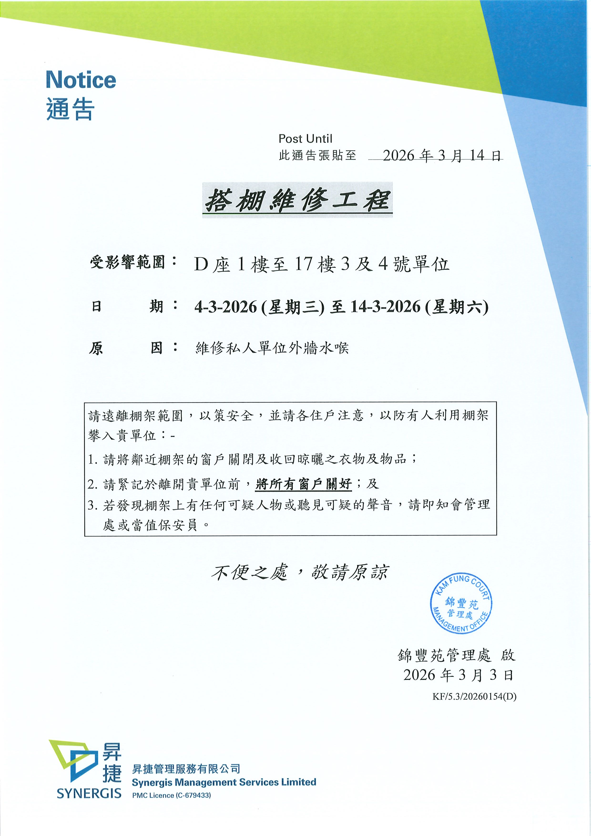 ©2021 馬鞍山錦豐苑業主立案法團 版權所有 不得轉載。