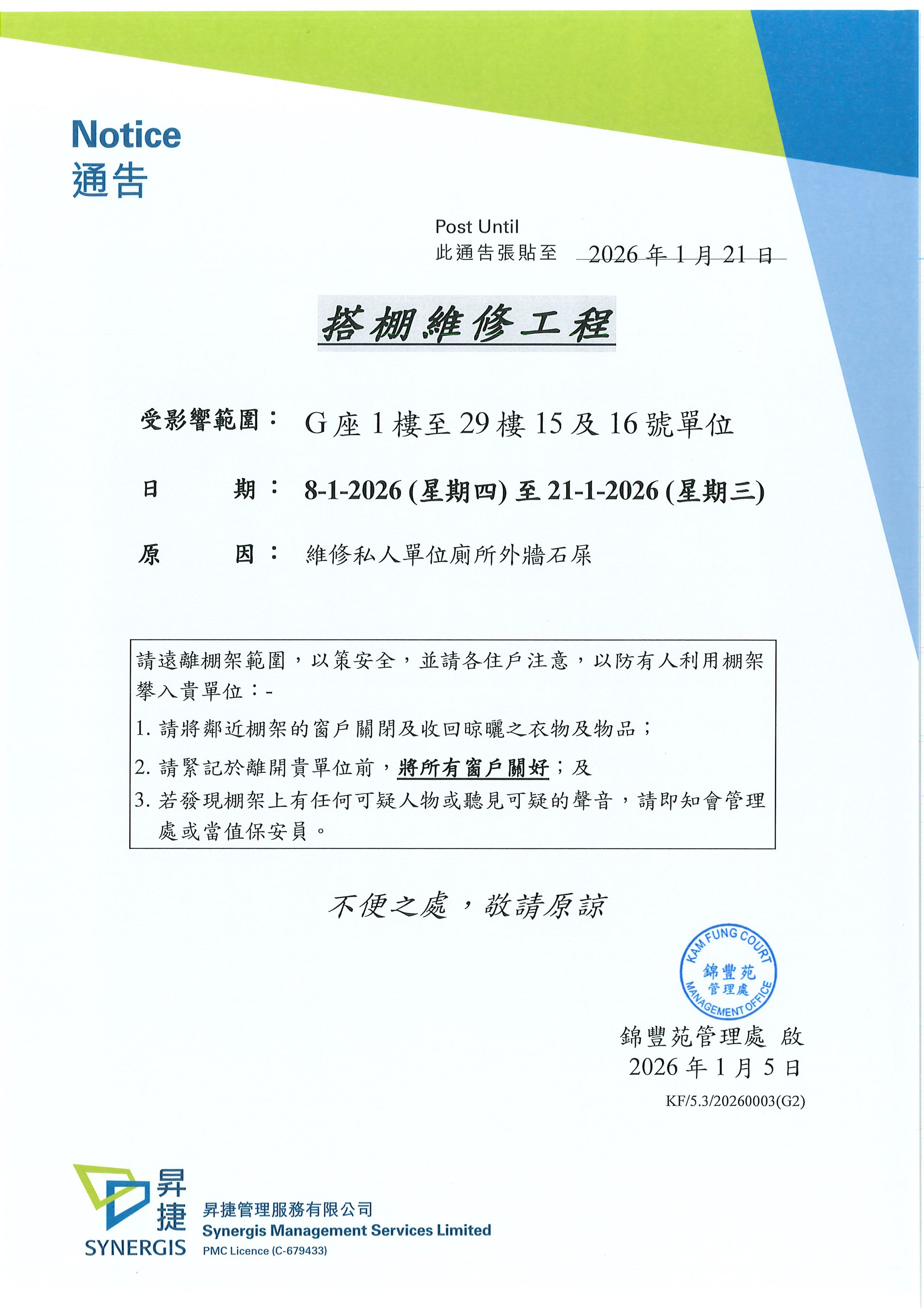 ©2021 馬鞍山錦豐苑業主立案法團 版權所有 不得轉載。
