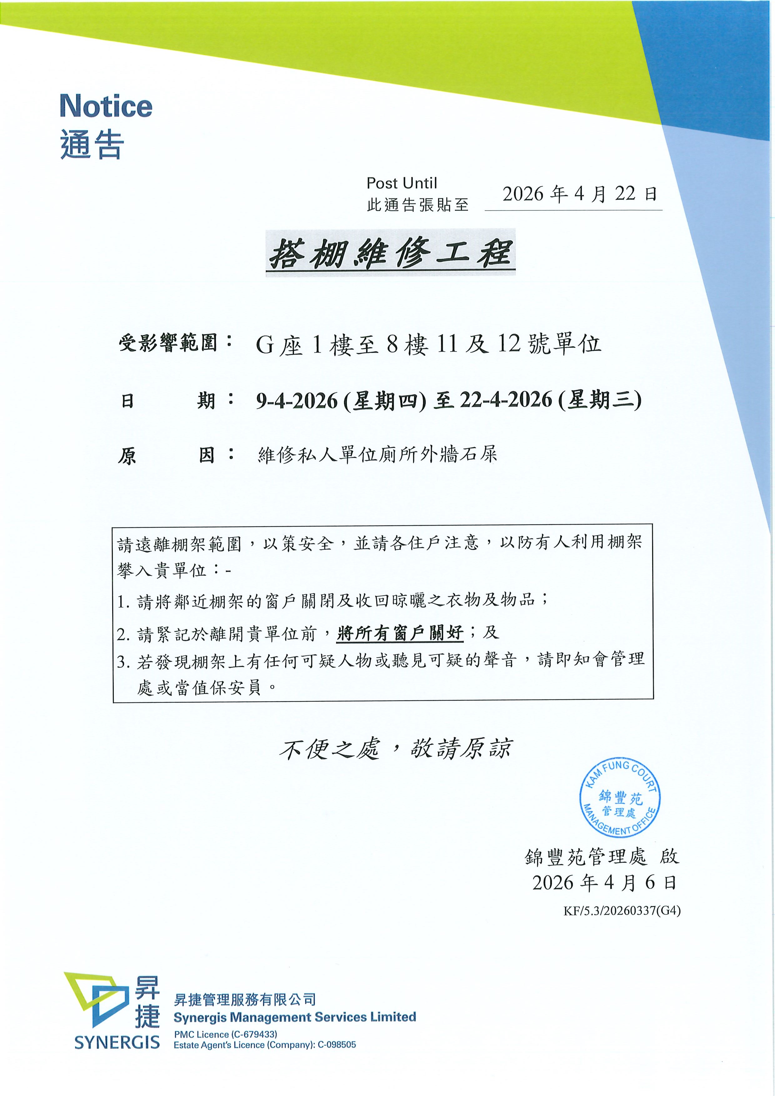 ©2021 馬鞍山錦豐苑業主立案法團 版權所有 不得轉載。